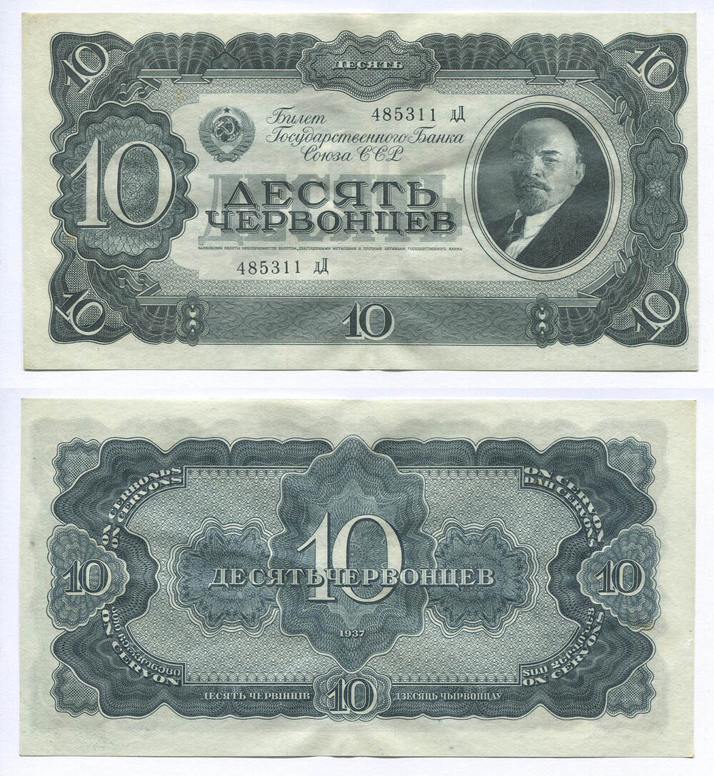 Билет Государственного Банка СССР. 10 черв. 1937 г. АА № U5.7 # 485311 дД