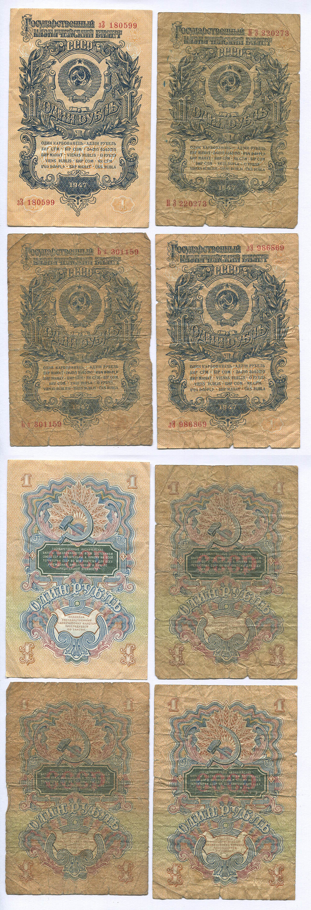 Групповой лот. Государственный казначейский билет СССР. 1 руб. 1947-1957 гг. 4 шт.