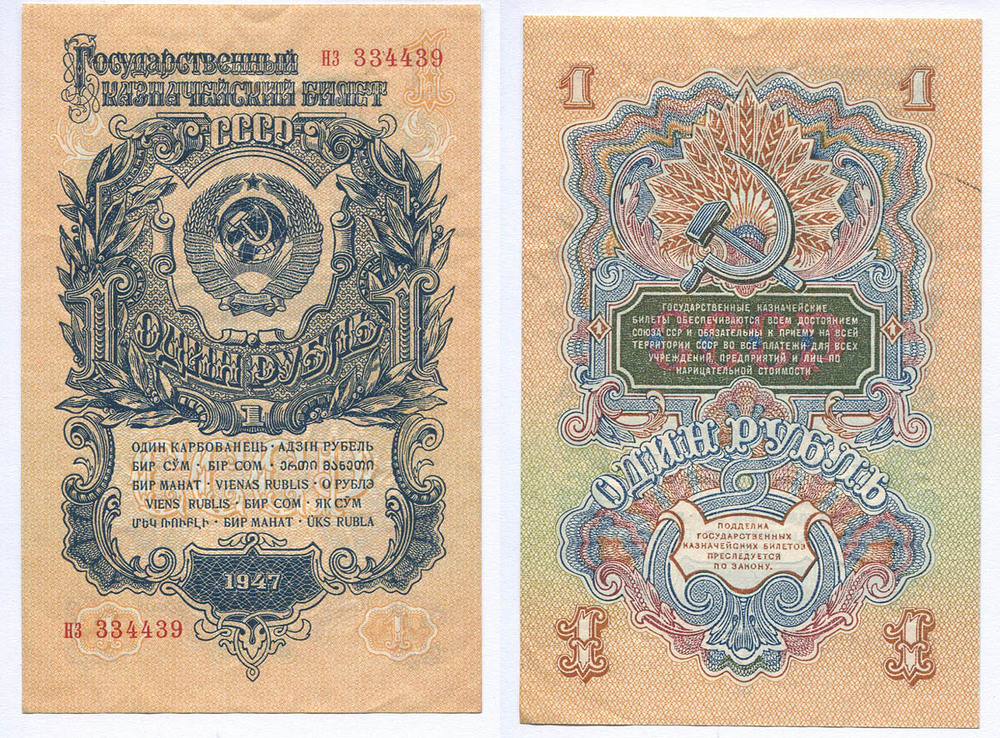 Государственный Казначейский Билет СССР 1 руб. 1957 г. АА № U7.1 № нз 334439