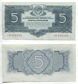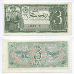 СССР. Государственный казначейский билет. 3 руб. 1938 г. AA № U5.2b # 249124 ХТ