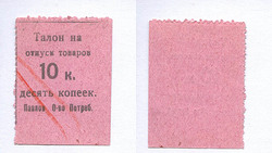 Павлово (Нижегородская губ.) О-во потребителей. 10 коп. Талон на отпуск товаров.