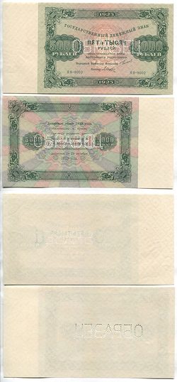 РСФСР. Государственный денежный знак. 5000 руб. 1923 г. АА № E15.9 # ЯЯ-9002 Образец