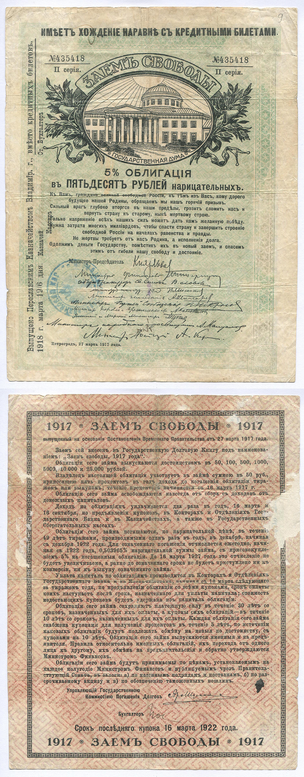 Переславль-Залесский. Штамп О. Г. Б. на Займе Свободы. 50 р. Рябч.2 № 3477 # 435418