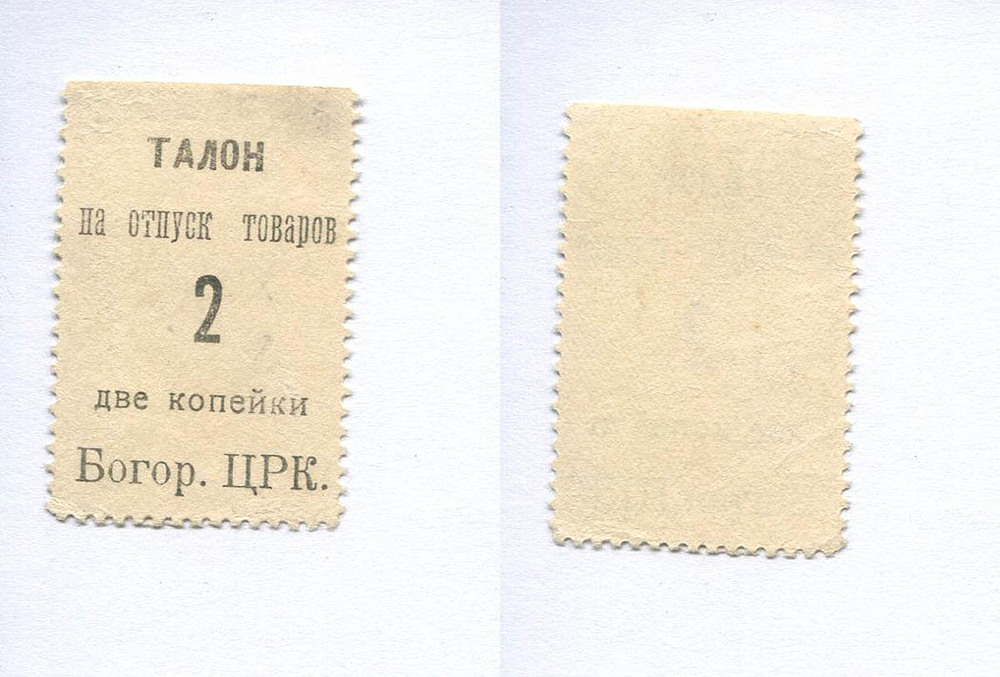 Богородск (Московской губ.). БЦРК. Талон. 2 коп. Рябч.2 № не описан.
