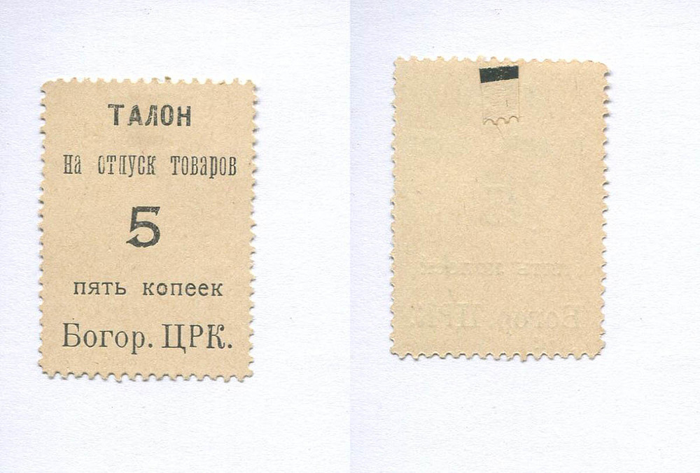 Богородск (Московской губ.). БЦРК. Талон. 5 коп. Рябч.2 № не описан.