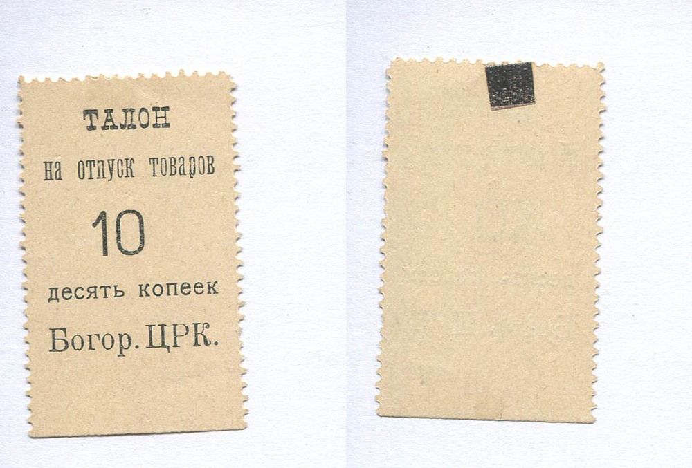 Богородск (Московской губ.). БЦРК. Талон. 10 коп. Рябч.2 № не описан.