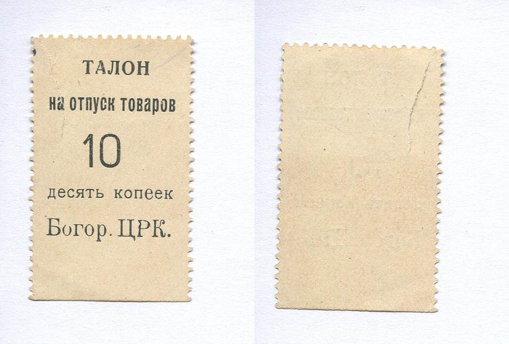 Богородск (Московской губ.). БЦРК. Талон. 10 коп. Рябч.2 № не описан.