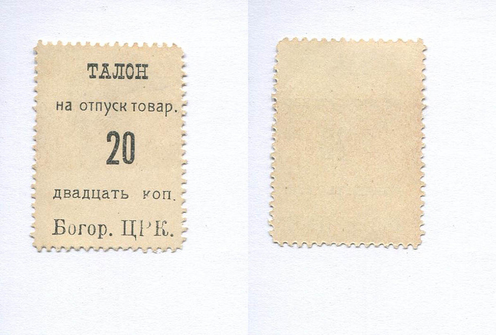 Богородск (Московской губ.). БЦРК. Талон. 20 коп. Рябч.2 № не описан.