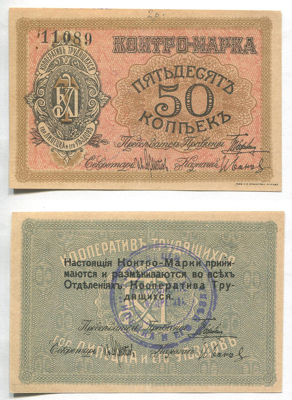 Липецк. Кооператив трудящихся. 50 коп. Рябч.2 № 4366 # 11089