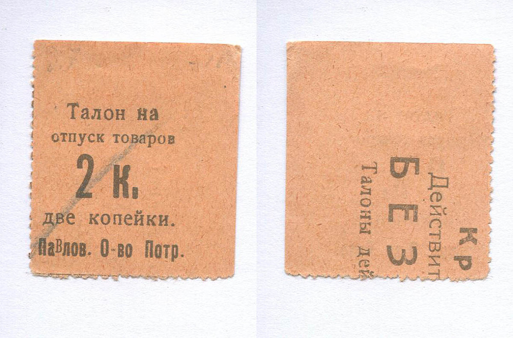 Павлово (Нижегородская губ.) О-во потребителей. 2 коп. Талон на отпуск товаров. оранжевая