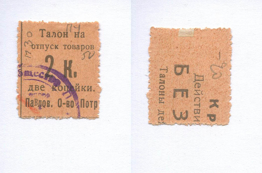 Павлово (Нижегородская губ.) О-во потребителей. 2 коп. Талон на отпуск товаров. оранжевая
