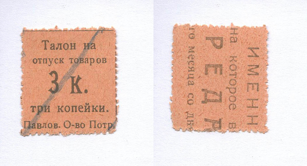Павлово (Нижегородская губ.) О-во потребителей. 3 коп. Талон на отпуск товаров. оранжевая