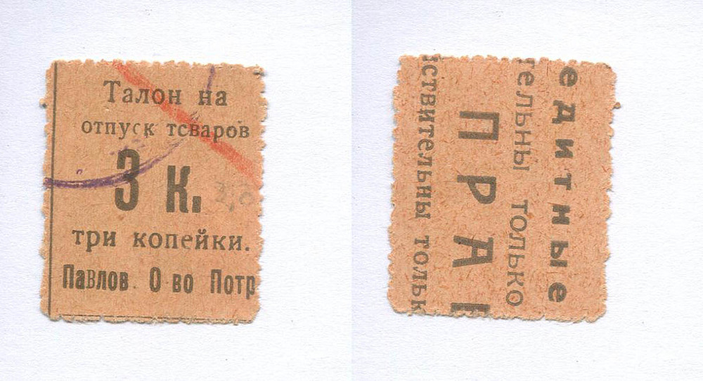 Павлово (Нижегородская губ.) О-во потребителей. 3 коп. Талон на отпуск товаров. оранжевая