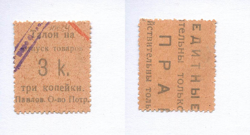 Павлово (Нижегородская губ.) О-во потребителей. 3 коп. Талон на отпуск товаров. оранжевая