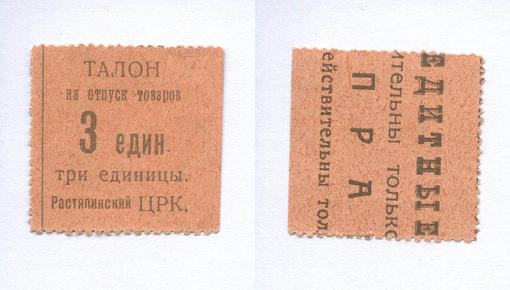 Растяпино (Нижегородская обл.). ЦРК. Талон на отпуск товаров. 3 единицы