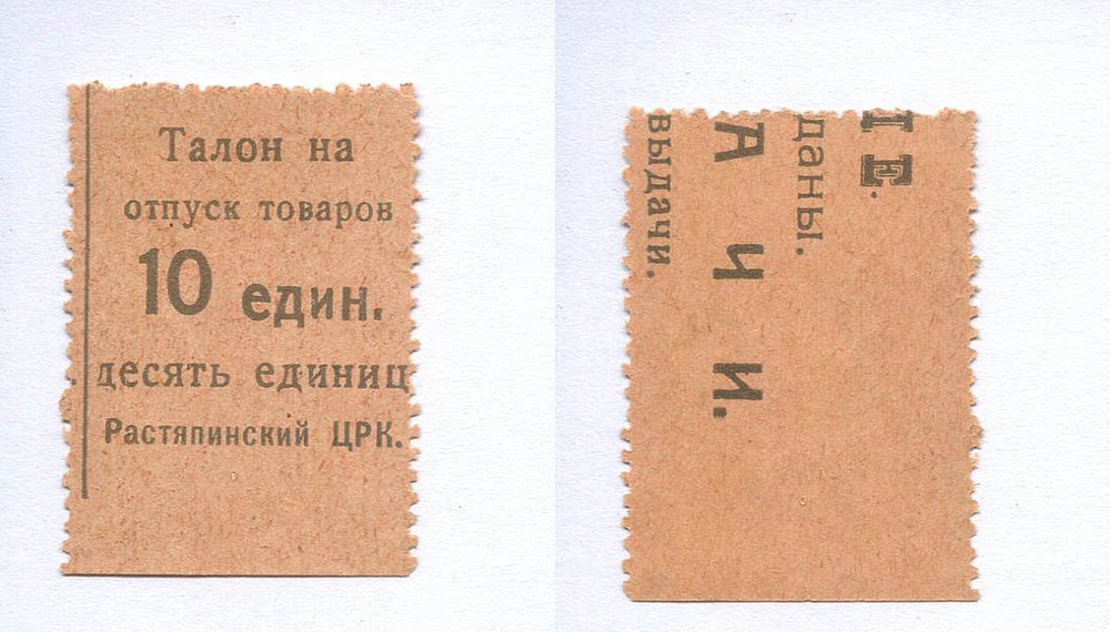 Растяпино (Нижегородская обл.). ЦРК. Талон на отпуск товаров. 10 единиц