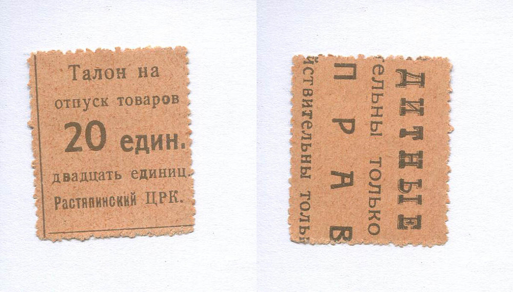 Растяпино (Нижегородская обл.). ЦРК. Талон на отпуск товаров. 20 единиц