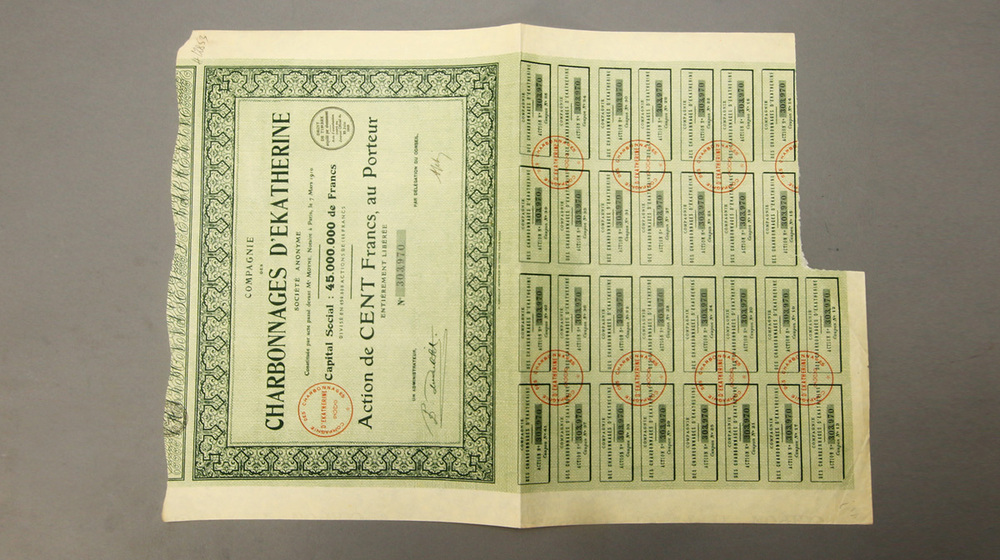 Акция. Екатериновка. Угольные шахты. 100 фр.