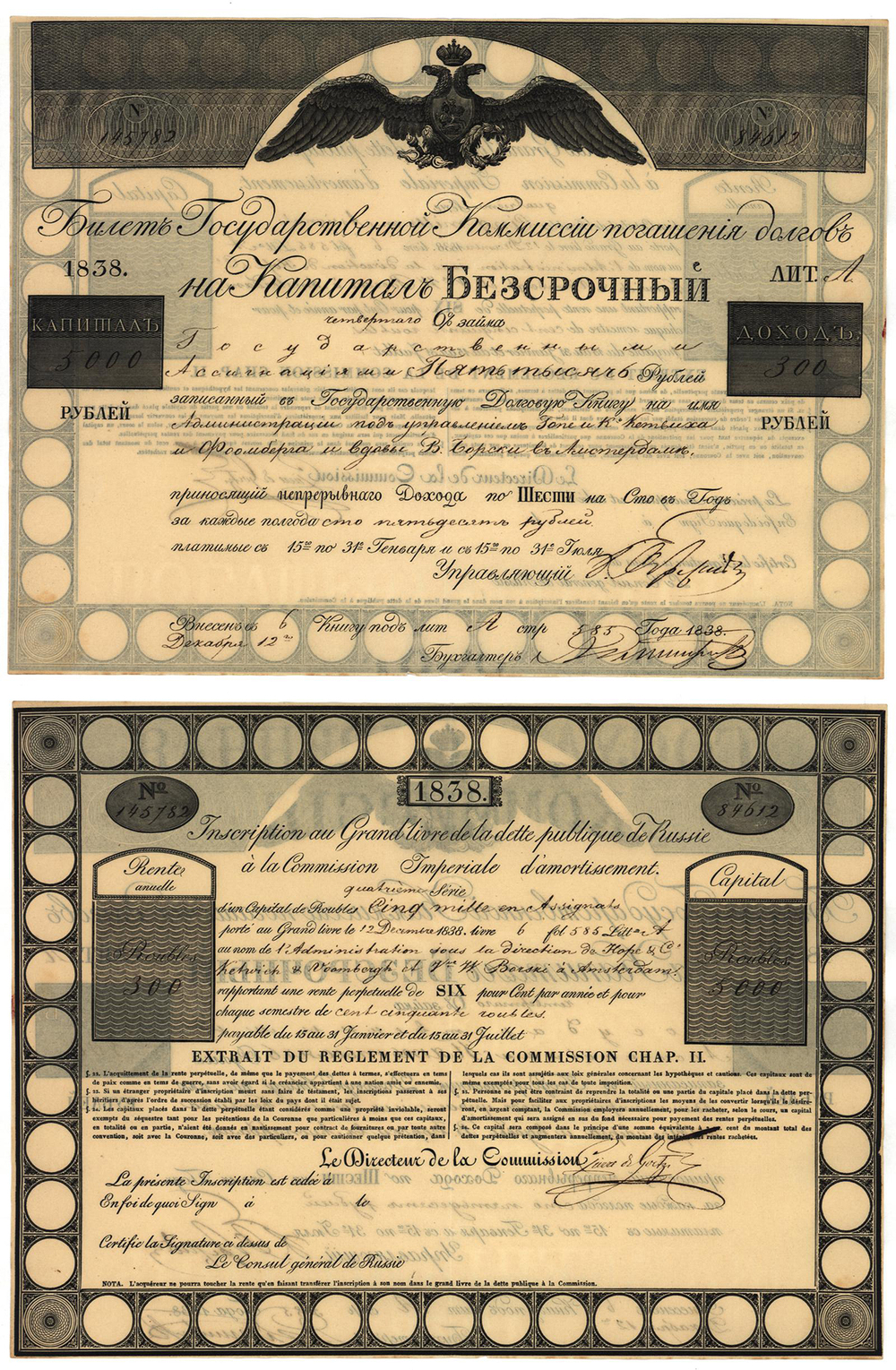 Билет Государственной комиссии погашения долгов. 5000 руб. 1838 г. № 145782