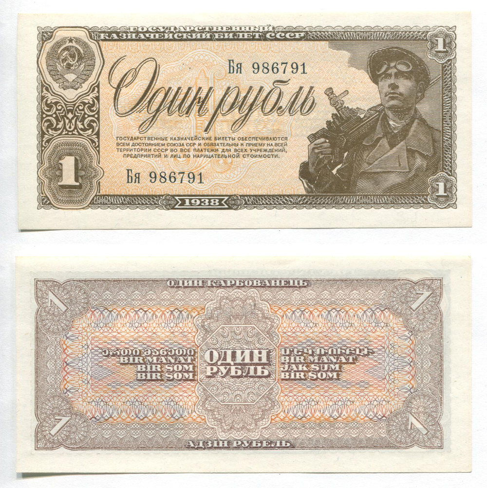 СССР. Государственный казначейский билет. 1 руб. 1938 г. АА № U5.1b # Бя 986791