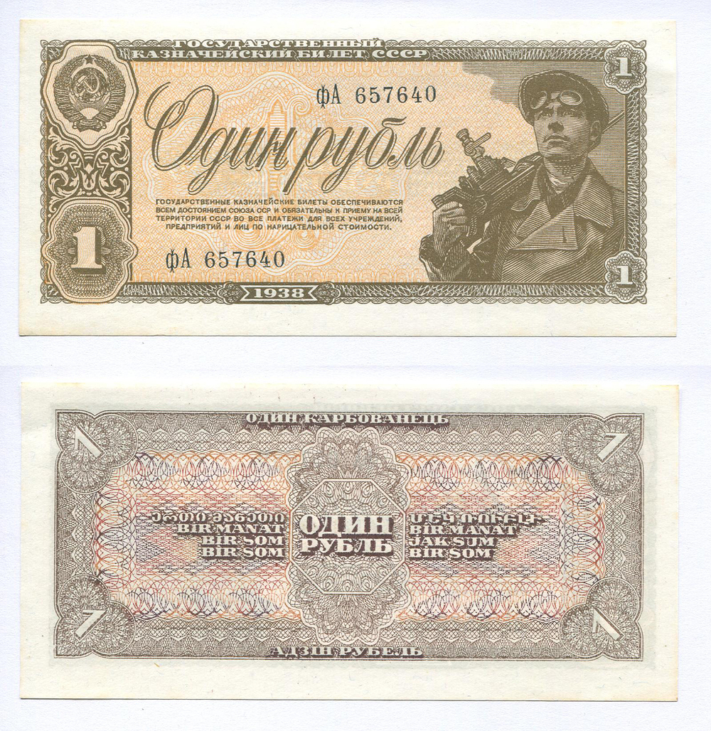 СССР. Государственный казначейский билет. 1 руб. 1938 г. АА № U5.1b # фА 657640