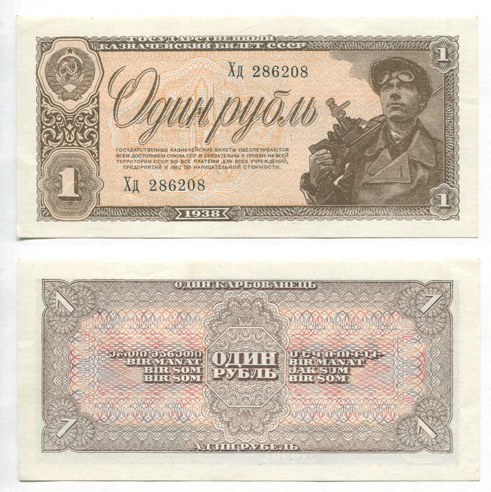 СССР. Государственный казначейский билет. 1 руб. 1938 г. АА № U5.1b # Хд 286208