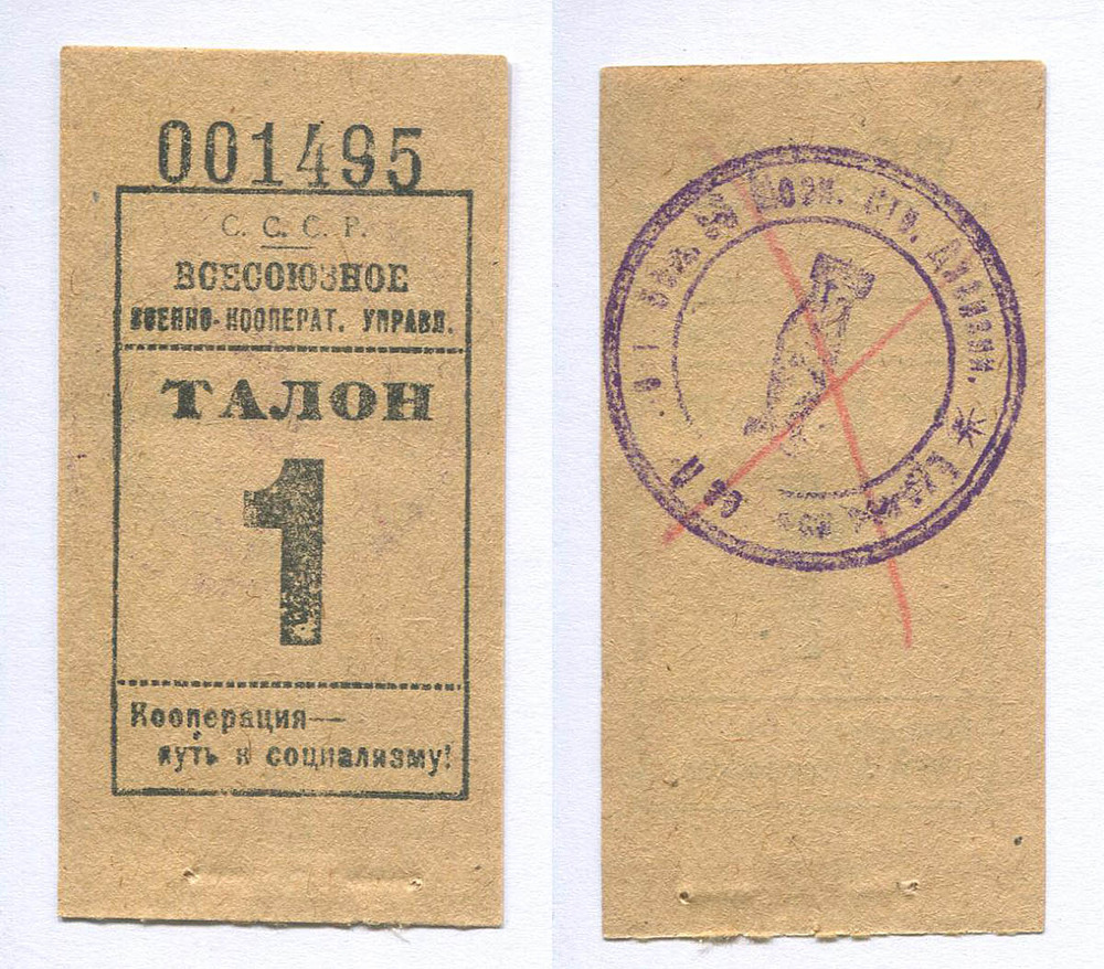 СССР Всесоюзное военно-кооперат. управл. талон 1. Рябч 2 не описан, №001495