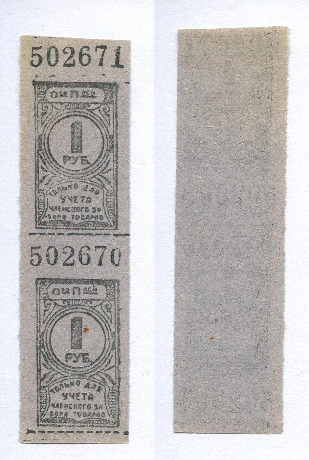 Общество потребителей. 1 руб. Только для учета членского забора товаров. № 502671 сцепка