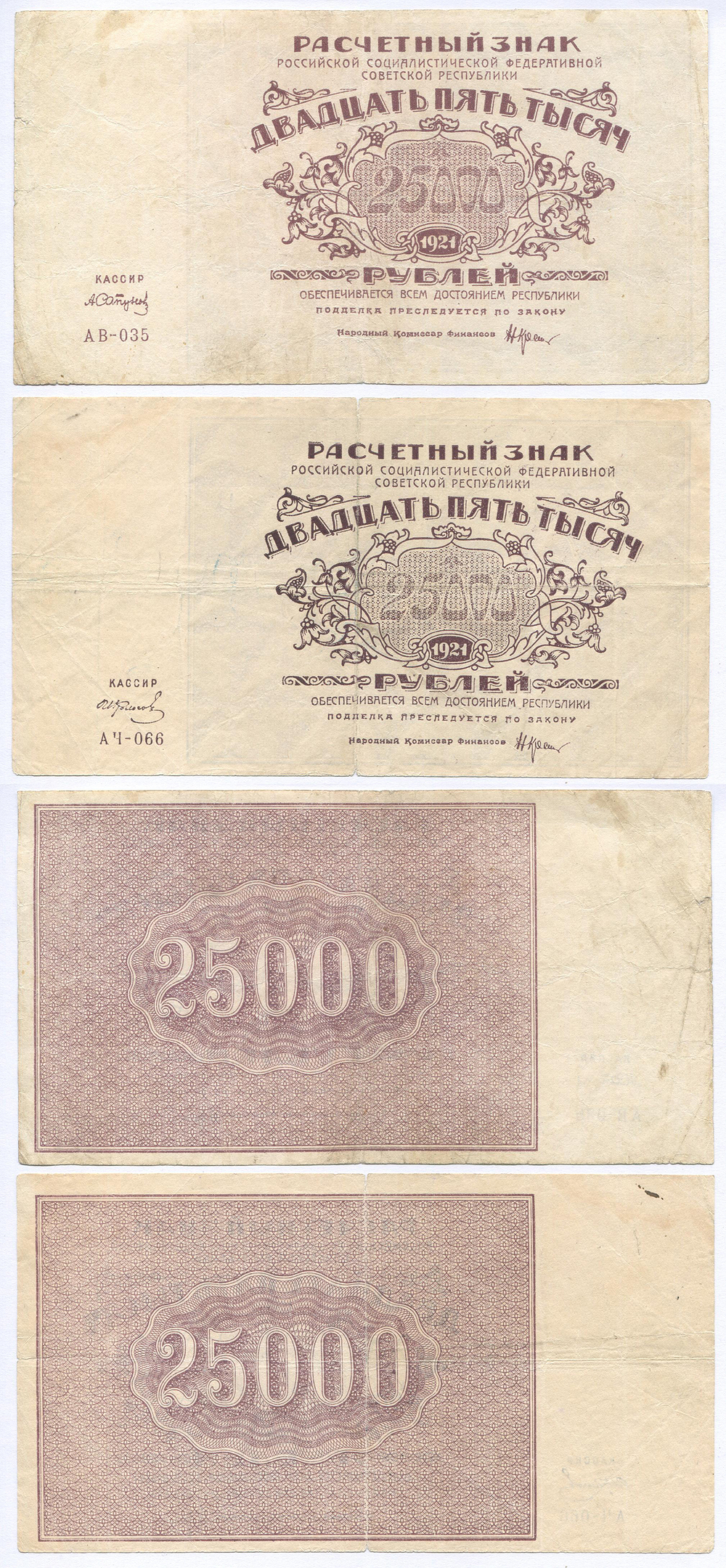 Групповой лот. РСФСР. Расчетные знаки 25.000 руб. 1921 г. 2 шт.