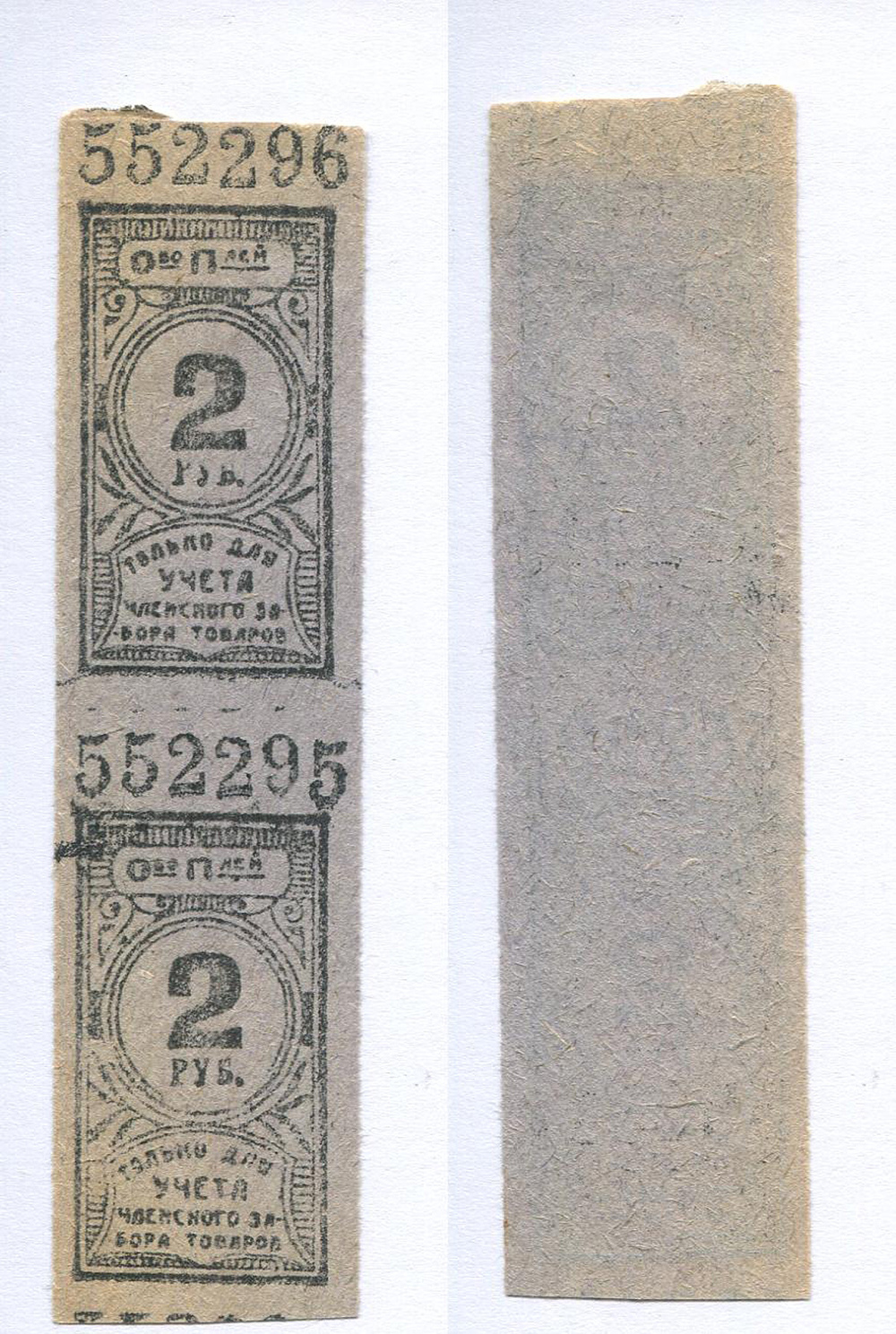 Общество потребителей. 2 руб. Только для учета членского забора товаров. № 552296 сцепка