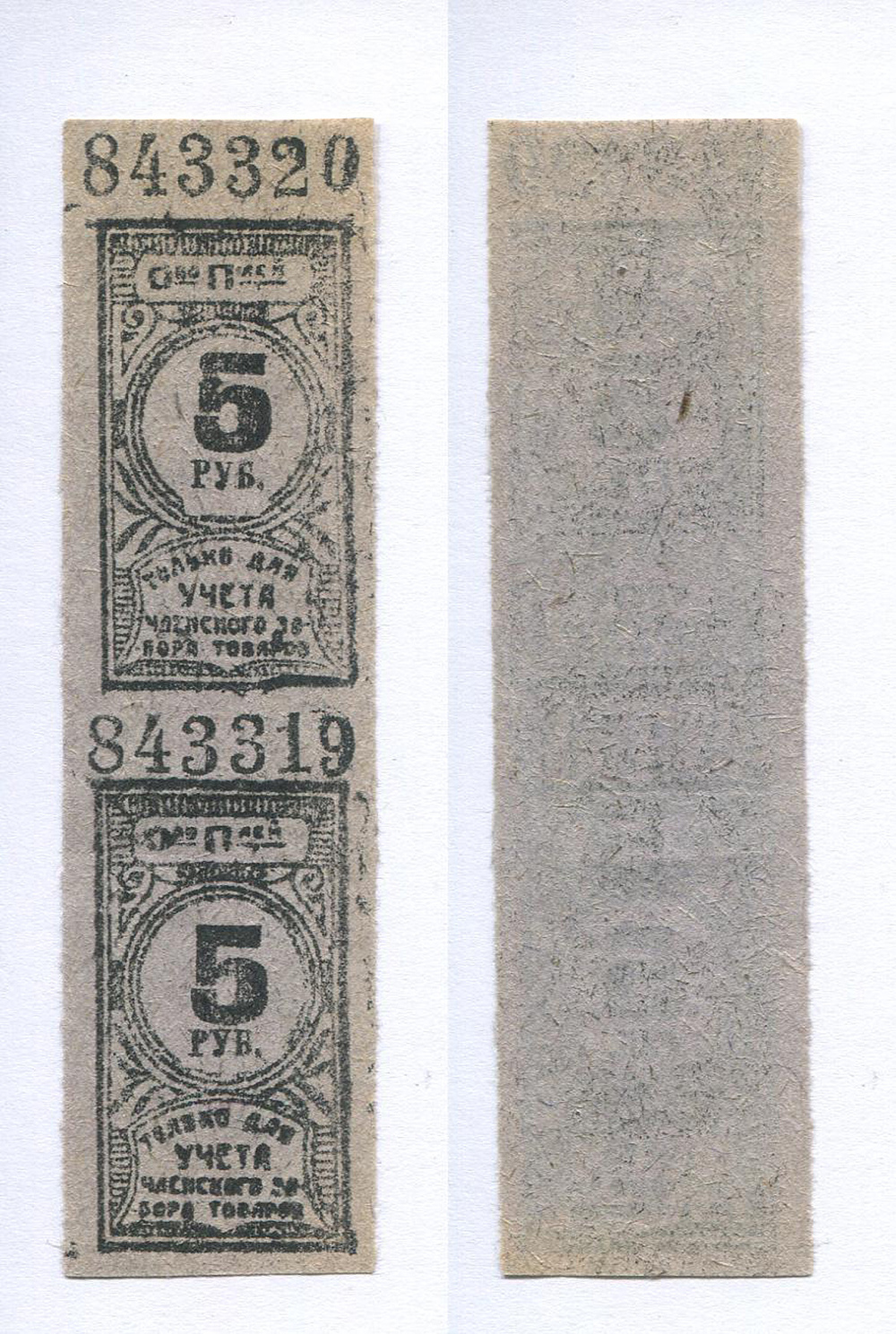 Общество потребителей. 5 руб. Только для учета членского забора товаров. № 843320 сцепка