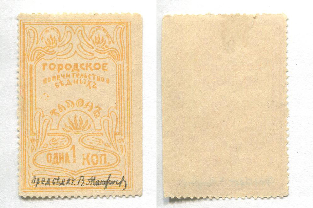Городское попечительство бедных. Талон. 1 коп.