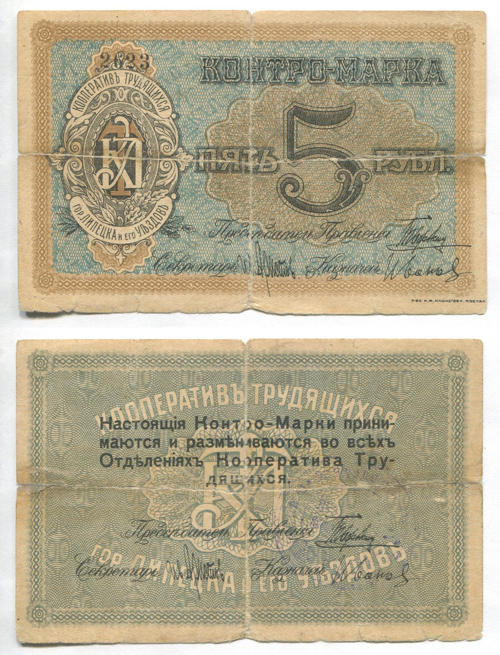Липецк. Кооператив трудящихся. 5 руб. Рябч.2 № 4369 # 2623