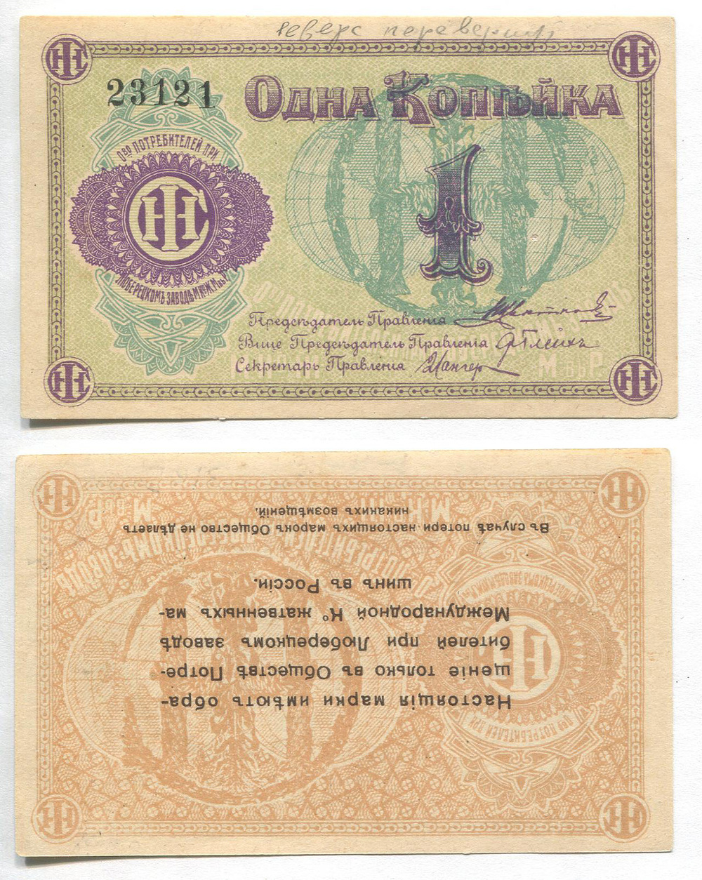 Люберцы. Общество потребителей при заводе жатвенных машин. Марка. 1 коп. Рябч.2 № 3253 # 23121