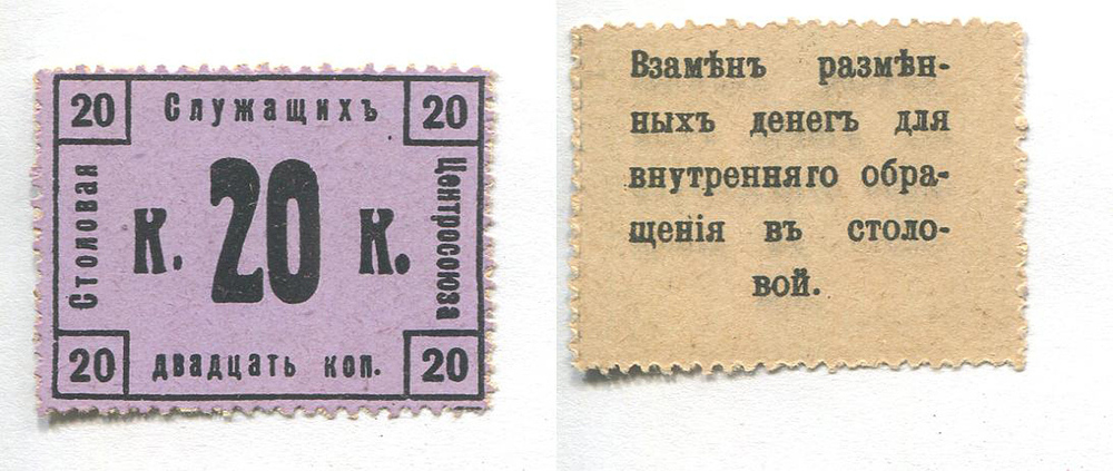 Москва. Столовая служащих Центросоюза. Марка. 20 коп. Рябч.2 № 3328 б/г