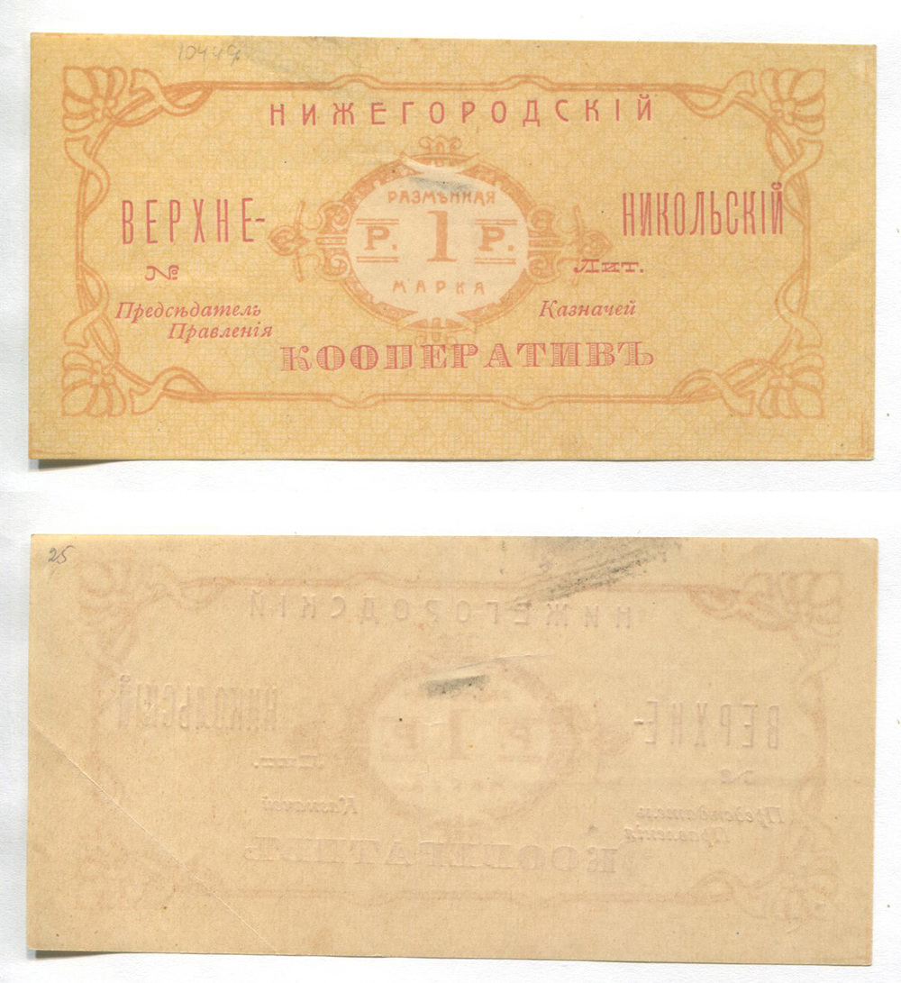 Нижний Новгород. Верхне-Никольский Кооператив. Разменная марка. 1 руб. Рябч.2 № 3997