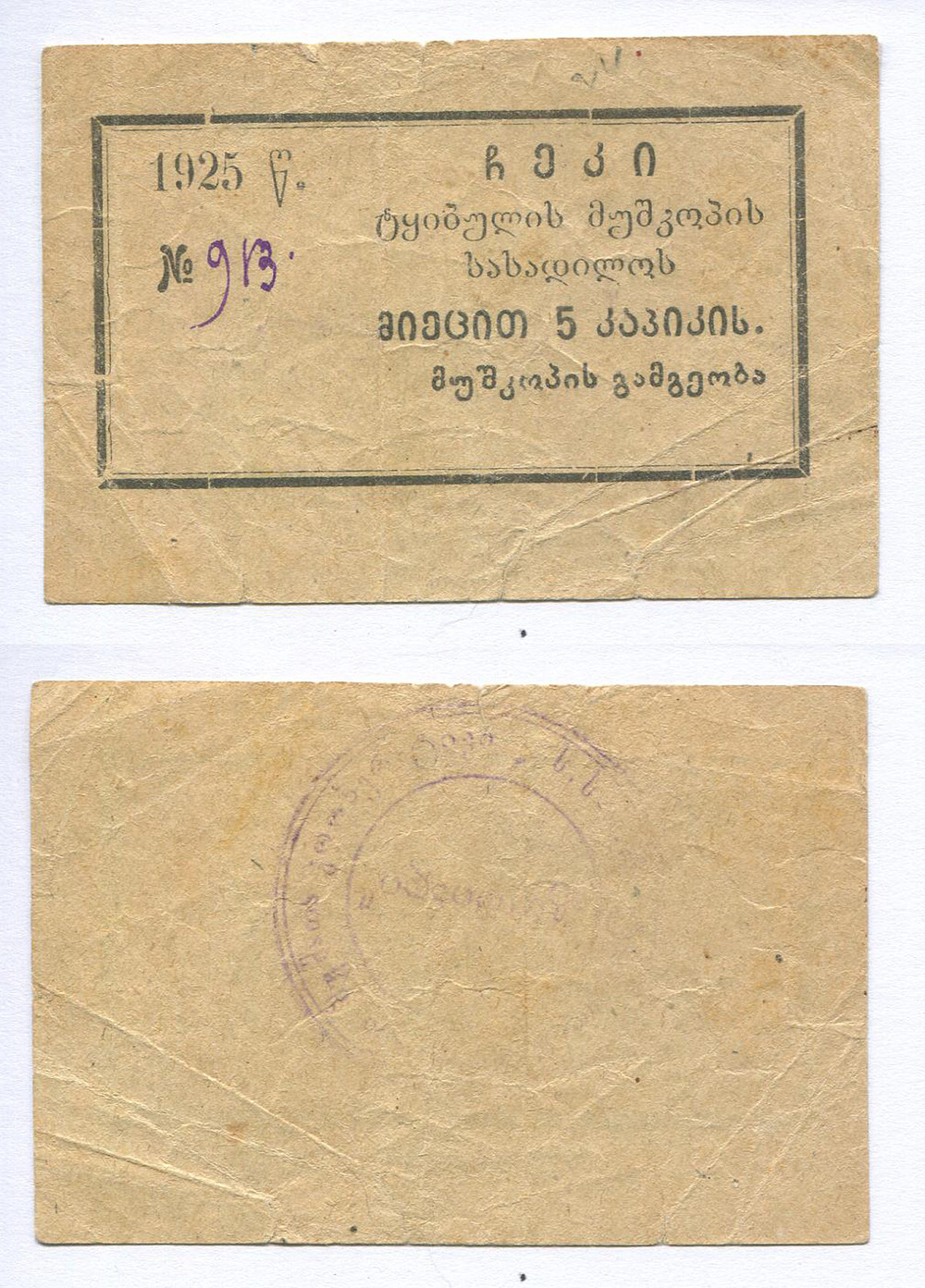 Тифлис. Кооператив "Маурнэ". 5 руб. Рябч.2 № 21162 # 913