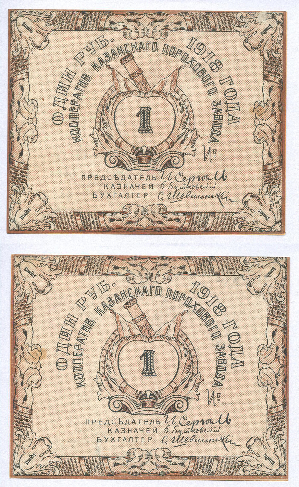 Казань. Кооператив Порохового Завода. 1 руб. Рябч.2 № 4682