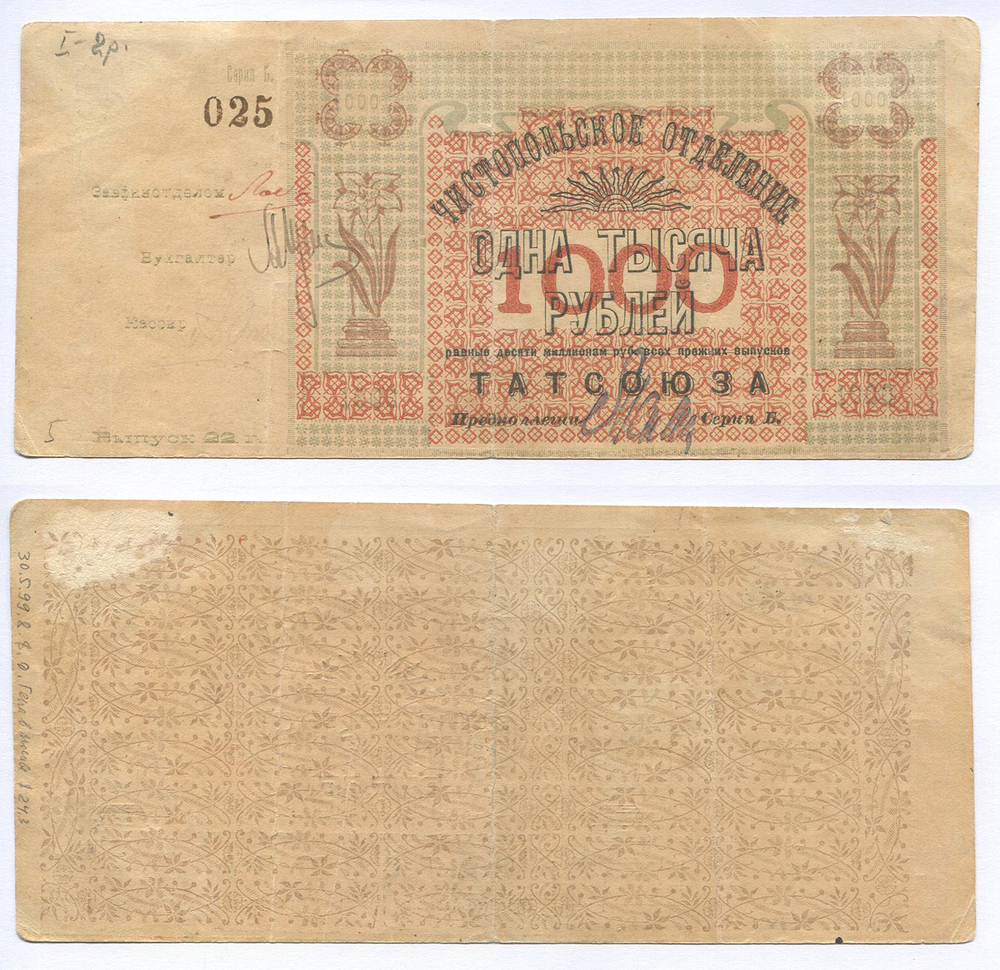 Чистополь. Отделение Татсоюза. 1000 руб. Рябч.2 № 5153 # 025