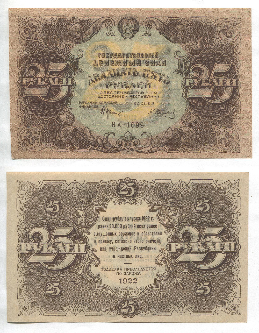 РСФСР. 25 руб. 1922 г. ВА-1099