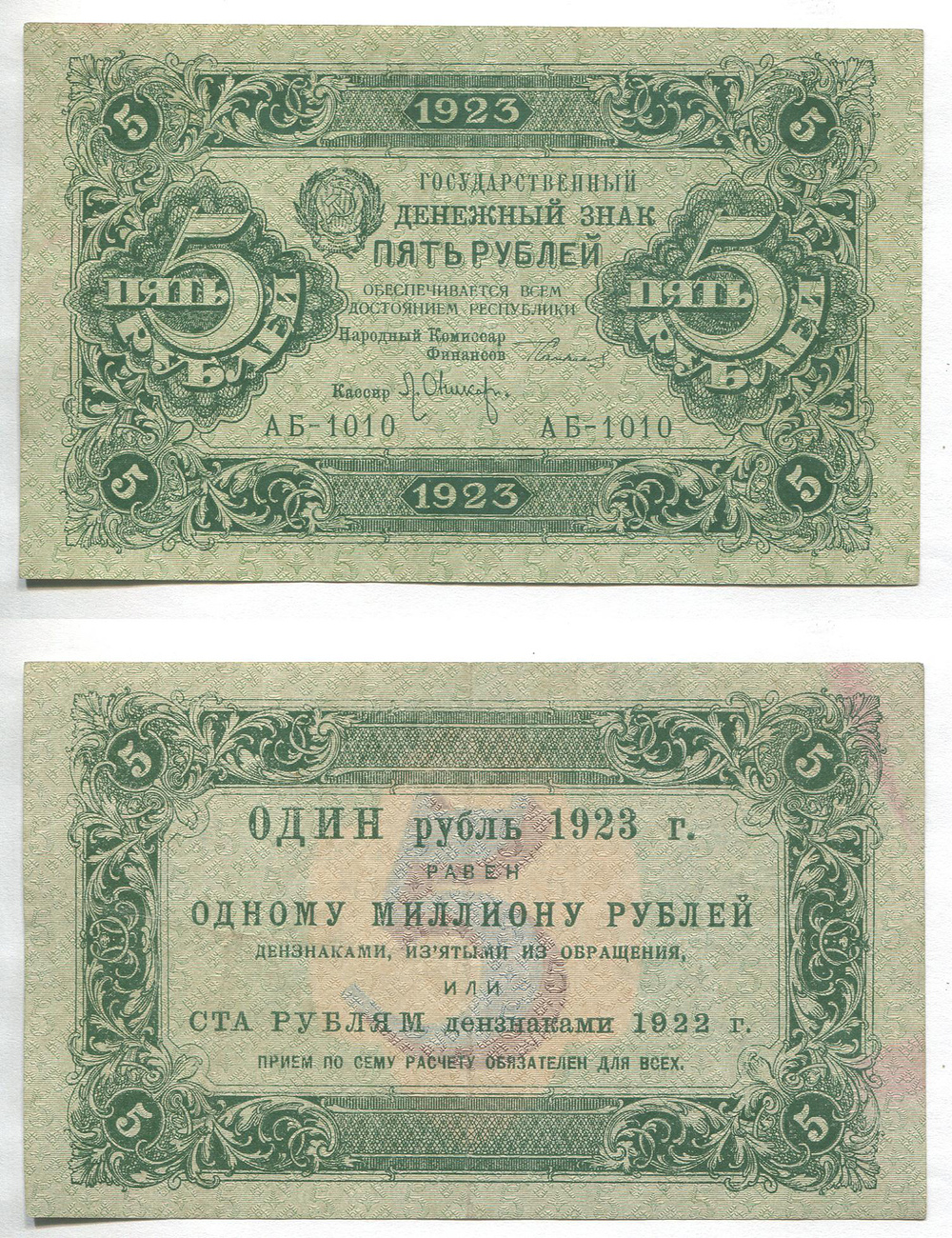 РСФСР. 5 руб. 1923 г. АБ-1010