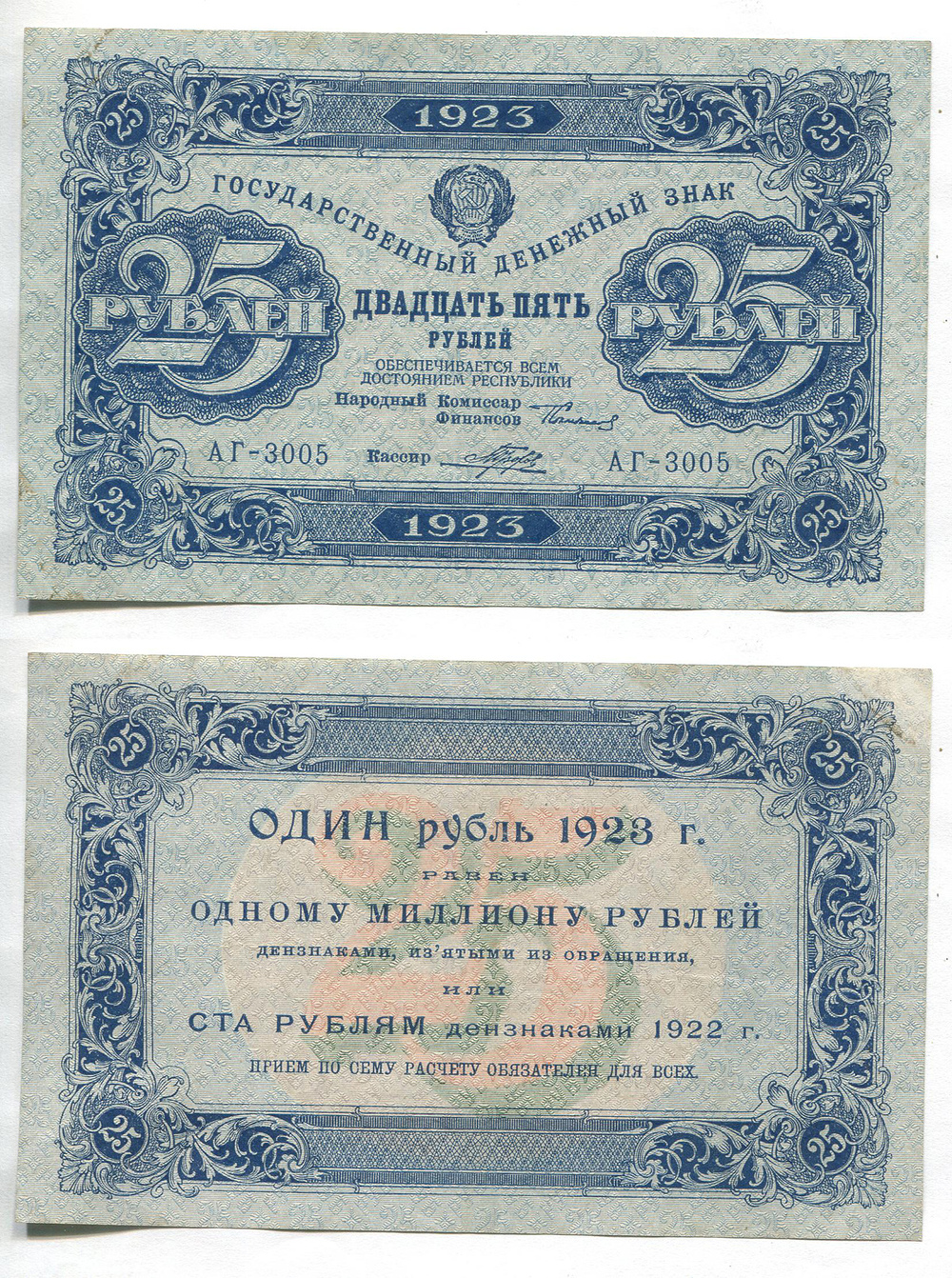РСФСР. 25 руб. 1923 г. АГ-3005