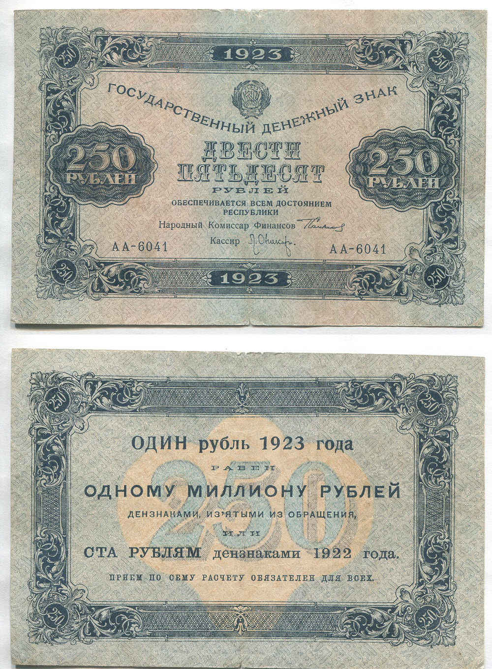 РСФСР. 250 руб. 1923 г. АА-6041
