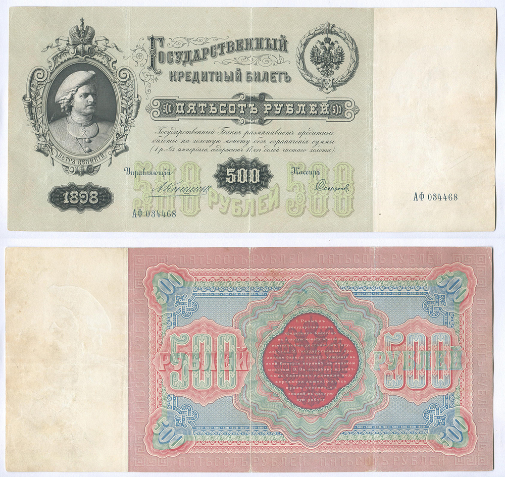 Государственный Кредитный Билет. 500 руб. 1898 г. Коншин/Сафронов АФ 034468