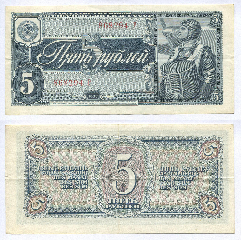 СССР. Государственный Казначейский Билет. 5 руб. 1938 г. 868294 Г