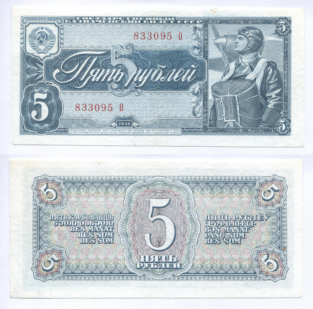 СССР. Государственный казначейский билет. 5 руб. 1938 г. 833095 О