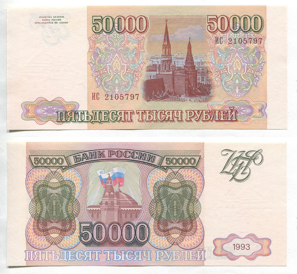 РФ. 50.000 руб. Банк России. 1993 г. ИС 2105797
