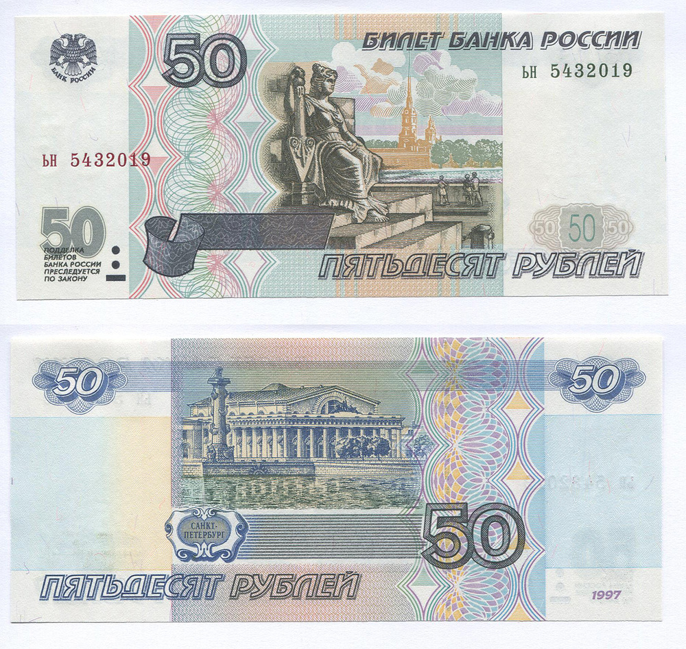 РФ. 50 руб. Банк России. ЬН 5432019 1997 г.