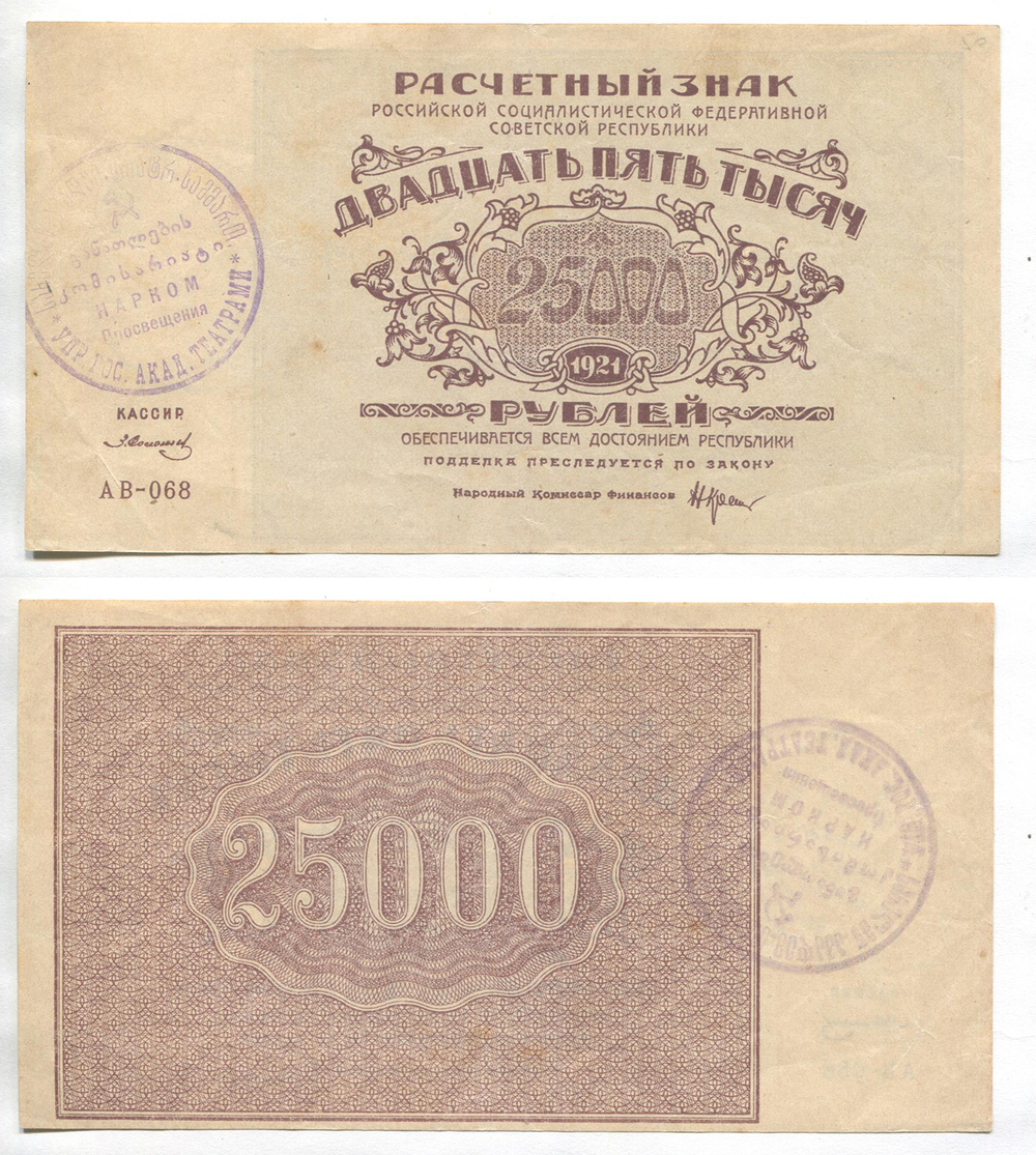 25 000 руб. Упр.Гос.Акад.Театрами Нарком Просвещения № АВ-068