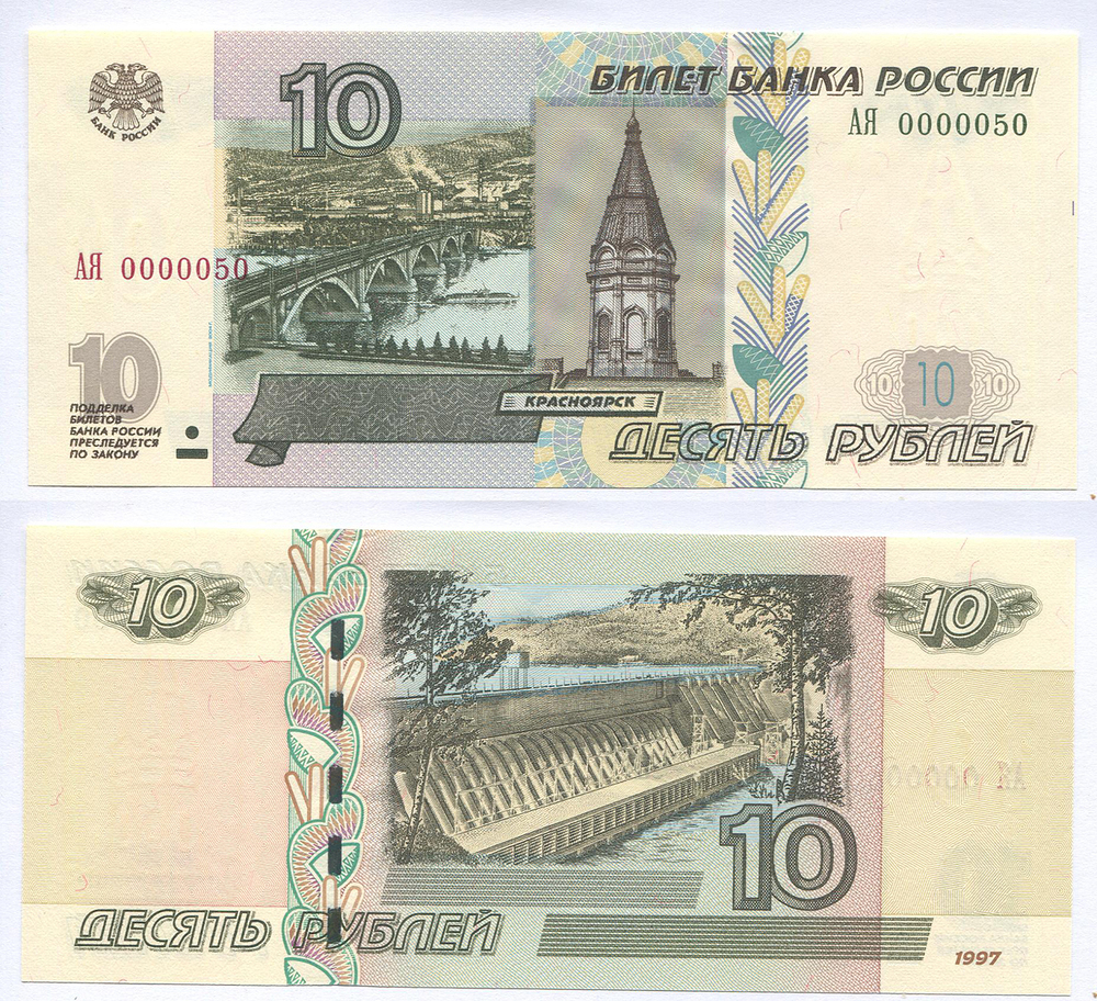 РФ. 10 руб. Банк России. 2004 г. АЯ 0000050